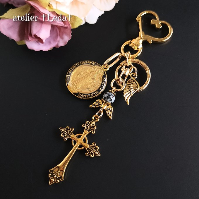 最強の悪魔祓い ☆聖ベネディクト ブラックエナメル メダイキーホルダー☆ - atelier †Leda†minne byGMOペパボ国内最大級のハンドメイド・手作り通販サイト。