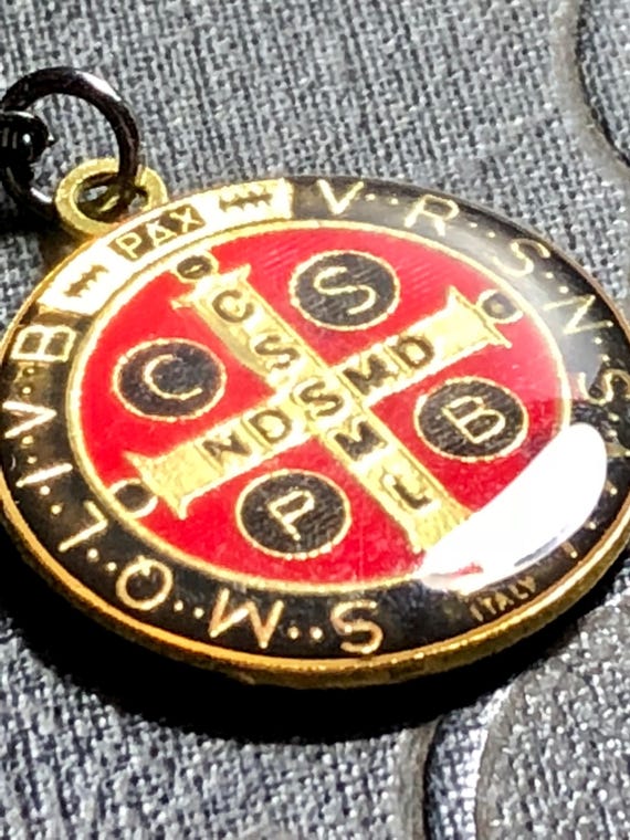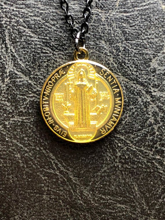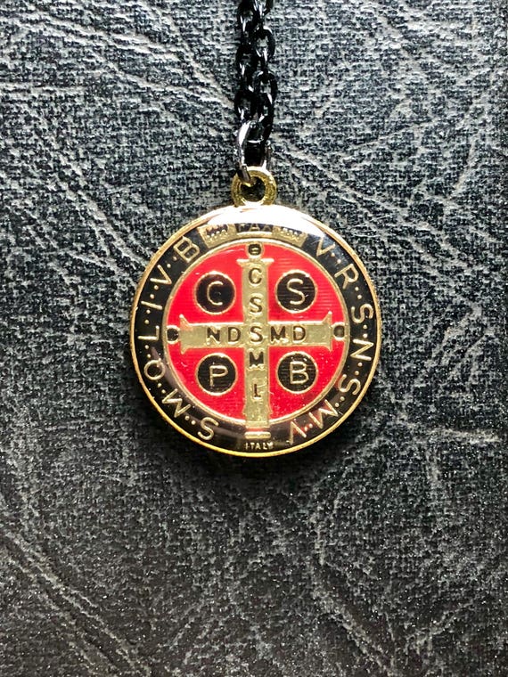 黒く塗られた悪魔祓いのお守り、黒と赤のエナメル加工の金の聖ベネディクトのメダリオン、聖ベネディクトが憑依された - Etsy 日本。