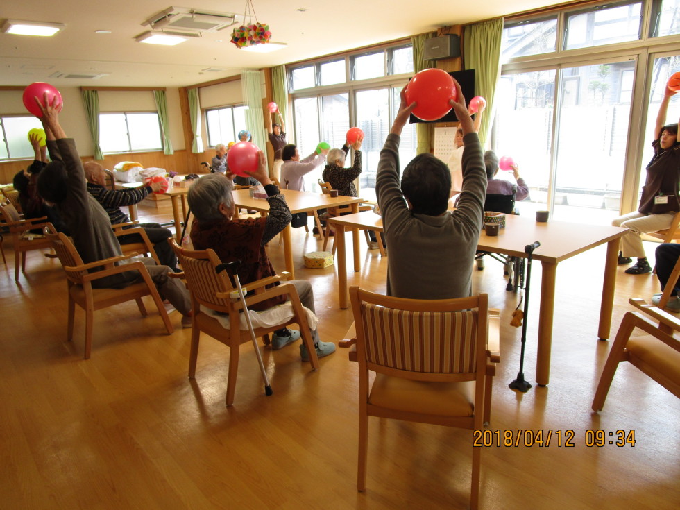 ボール体操!!住宅型有料老人ホーム「き楽な里」・デイサービス・訪問介護。