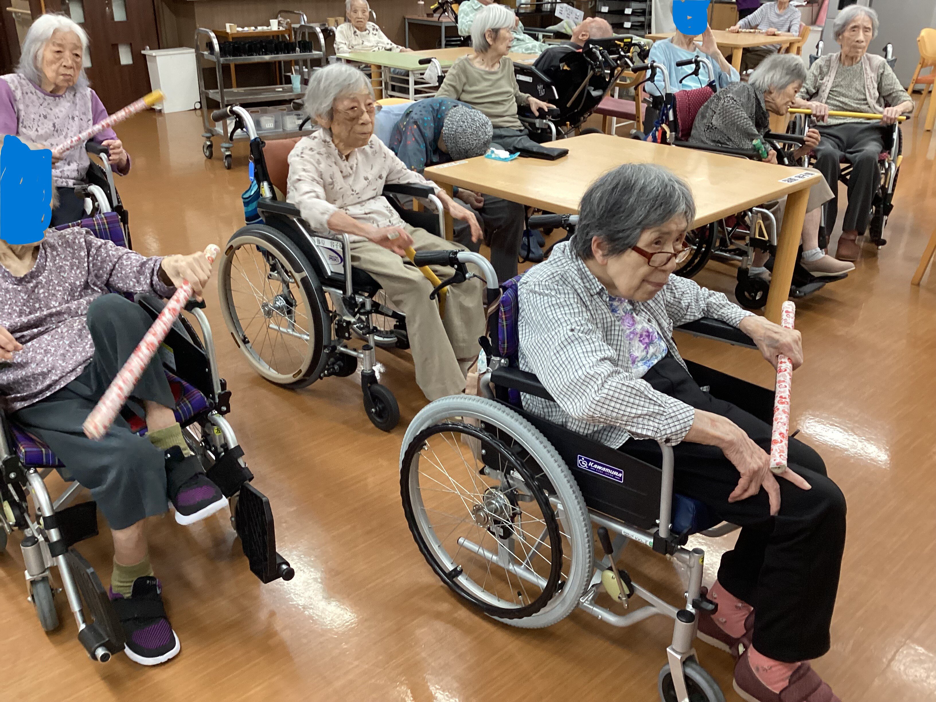 こんにちは!たいよう宗像館です😁 蒸し暑い昼下がり、職員の動きを見ながら 棒体操に参加!皆さん一生懸命です *≧∀≦*体を動かす事が大好きなので、一つ一つに 楽しんでいました😊有料老人ホームたいよう老人ホームたいよう宗像館介護施設介護士おねだん。