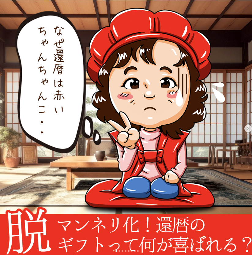 何で還暦って赤いちゃんちゃんこを贈るんだろうNo.26370SNS投稿紹介世田谷 文の菓 ふみのかブログ。