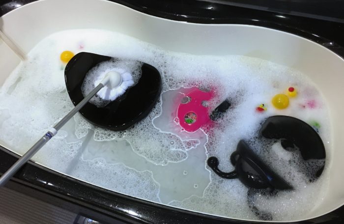風呂椅子についた水垢を浴槽オキシ漬けでピカピカに!子供のおもちゃもまとめて掃除Aya blog-猫と料理と植物と。