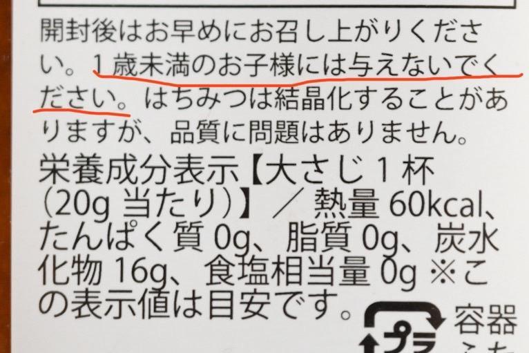 ☆ ハチミツ は1歳を過ぎてから与えましょう 1歳未満の赤ちゃんがハチミツを食べることによって乳児ボツリヌス症 にかかることがあります。ボツリヌス菌は熱に強いので、通常の加熱や調理では死にません。 ハチミツやハチミツを含む食品は1歳未満の赤ちゃんには与え。