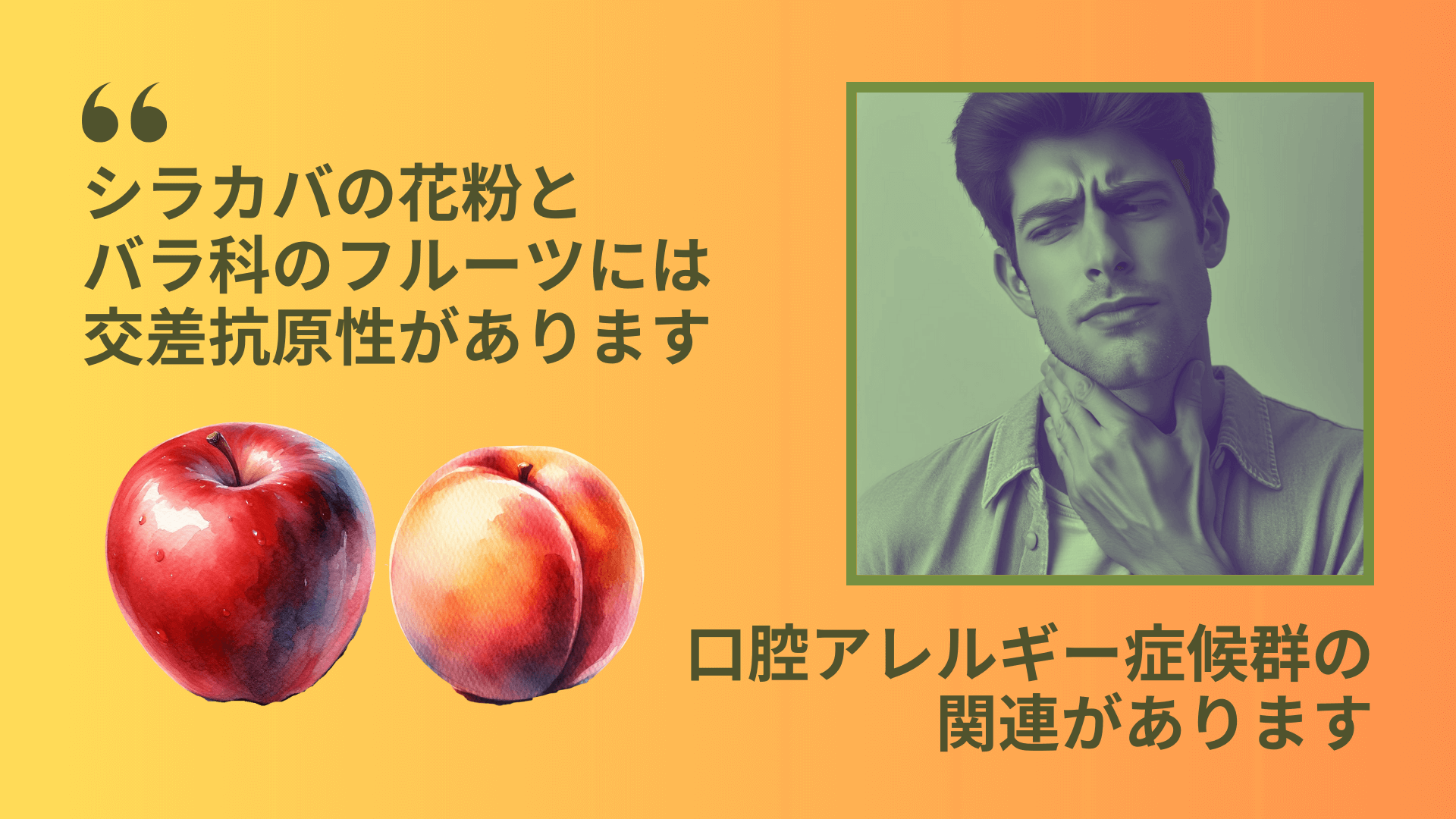白樺花粉症をお持ちの方は秋の味覚にご注意を!果物によっては、のどがイガイガとかゆくなっちゃいますよ。SIRACA。