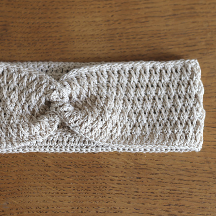 かぎ針編み無料編み図「クロスヘアバンド」かぎ針編みレシピ・無料編み図 Roniqueロニーク。