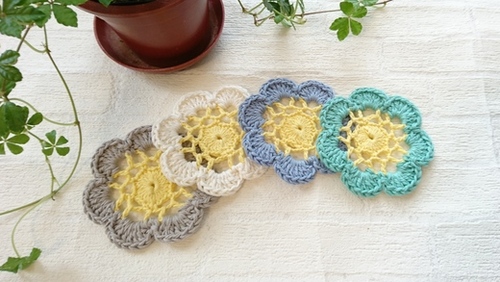かぎ針のレシピ「コイル編みの角座」の編み方ぬくもり。