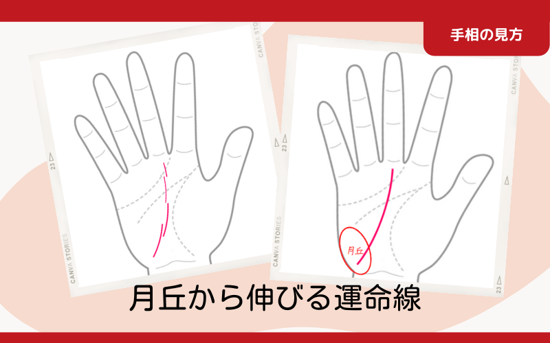 月丘から伸びる運命線他人に引き立てられて運気が上がる人手相観ぱなせ。