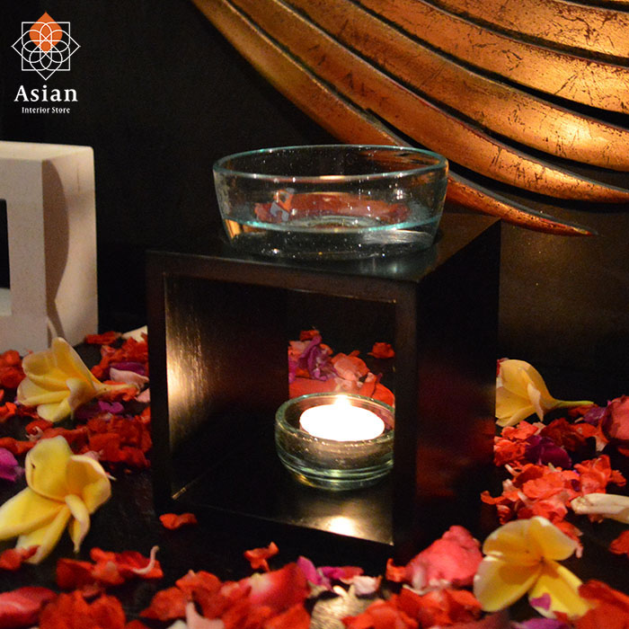 チーク×ガラスのキャンドル式 高級アロマポットブラックアロマバーナー アロマデフューザー 石 バリ風 バリ 雑貨 バリ島 アジアン 雑貨アジアンテイスト ルームフレグランス 芳香剤 部屋 アロマセラピー アロマオイル エステサロン。