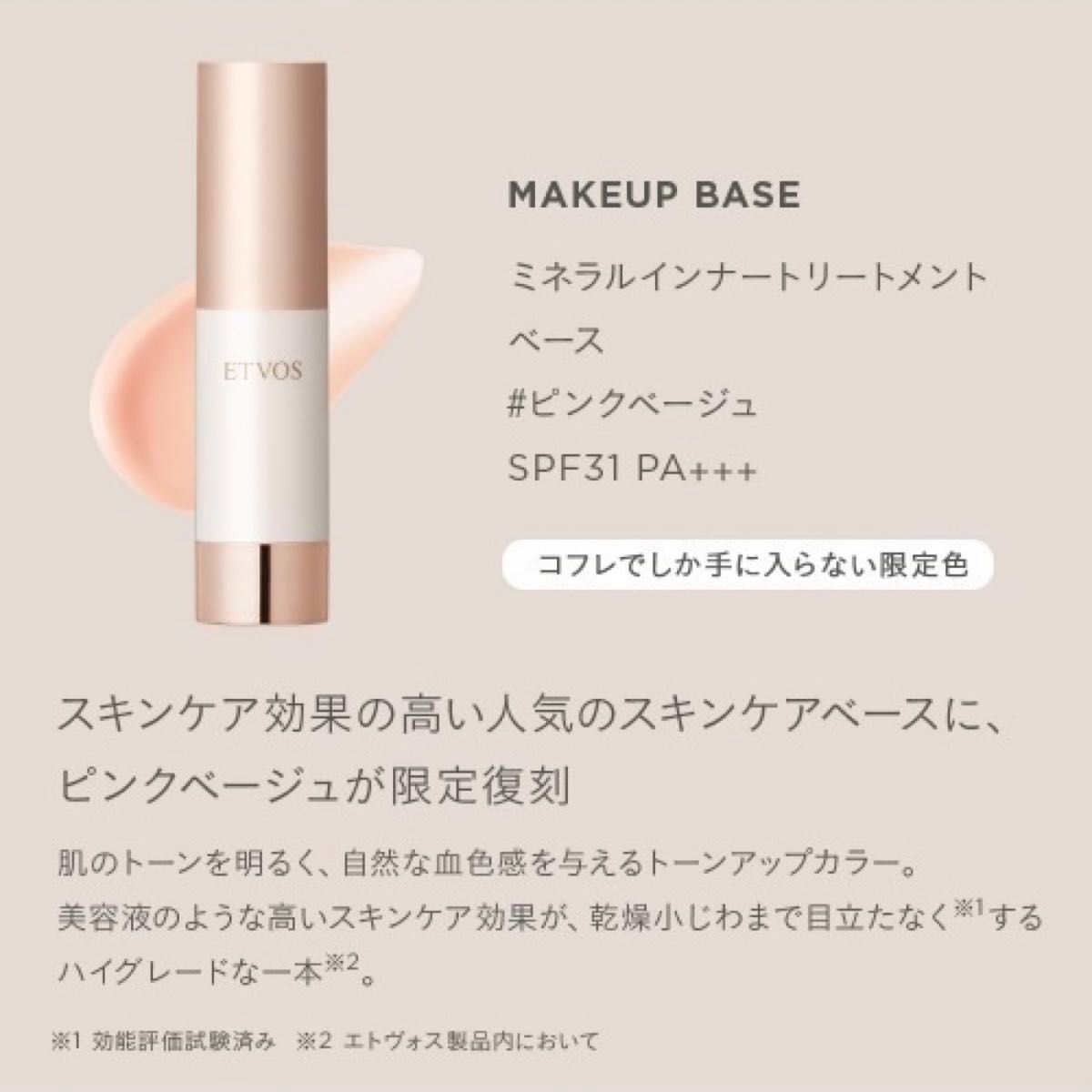 15日P10倍☆14日・16日〜500円OFFクーポン エトヴォス ETVOS ミネラルインナートリートメントベース ポーセリンベージュ SPF31PA+++ 25mL 化粧下地 夏ギフト 定番化希望! エトヴォス神下地ミネラルインナートリートメントベース 限定色ピンクベージュ 定番色。