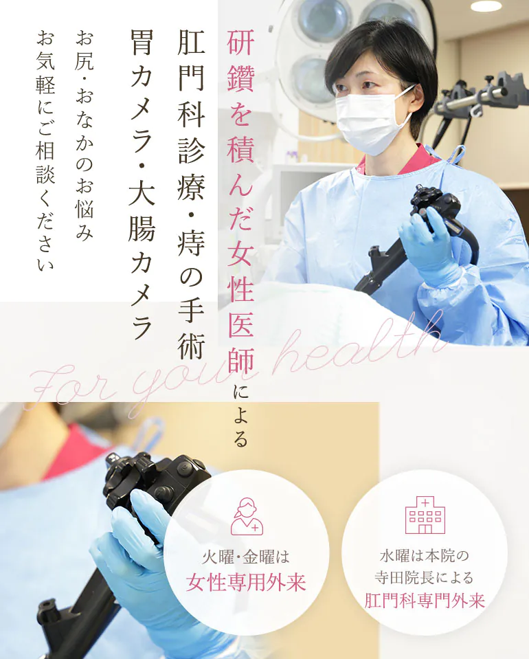 いぼ痔・切れ痔・痔瘻かも?恥ずかしさに配慮した診療・治療寺田病院足立区の肛門科。