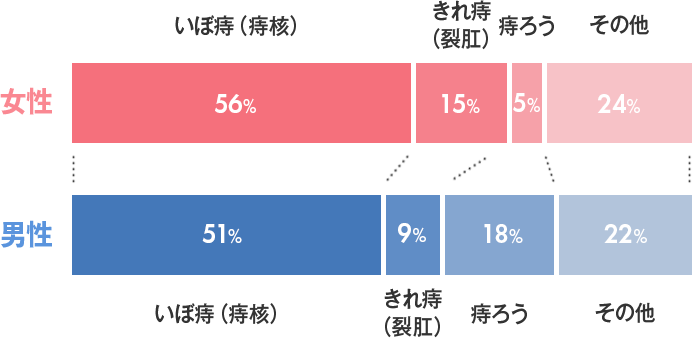 男性、女性ともにもっとも多いいぼ痔医療法人 彦坂医院。
