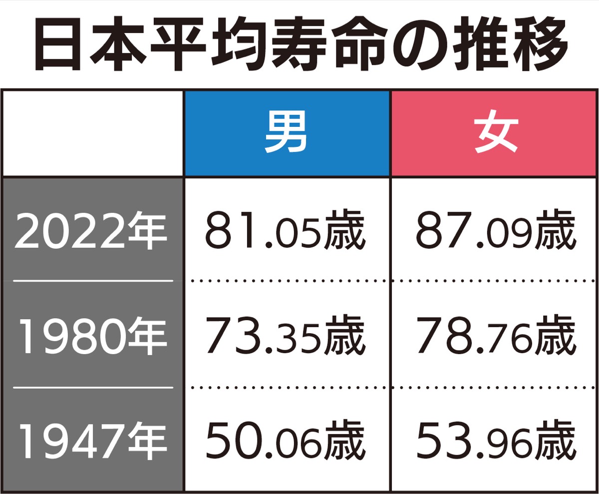男81.05歳女87.09歳 日本人の平均寿命海老名・座間・綾瀬タウンニュース。
