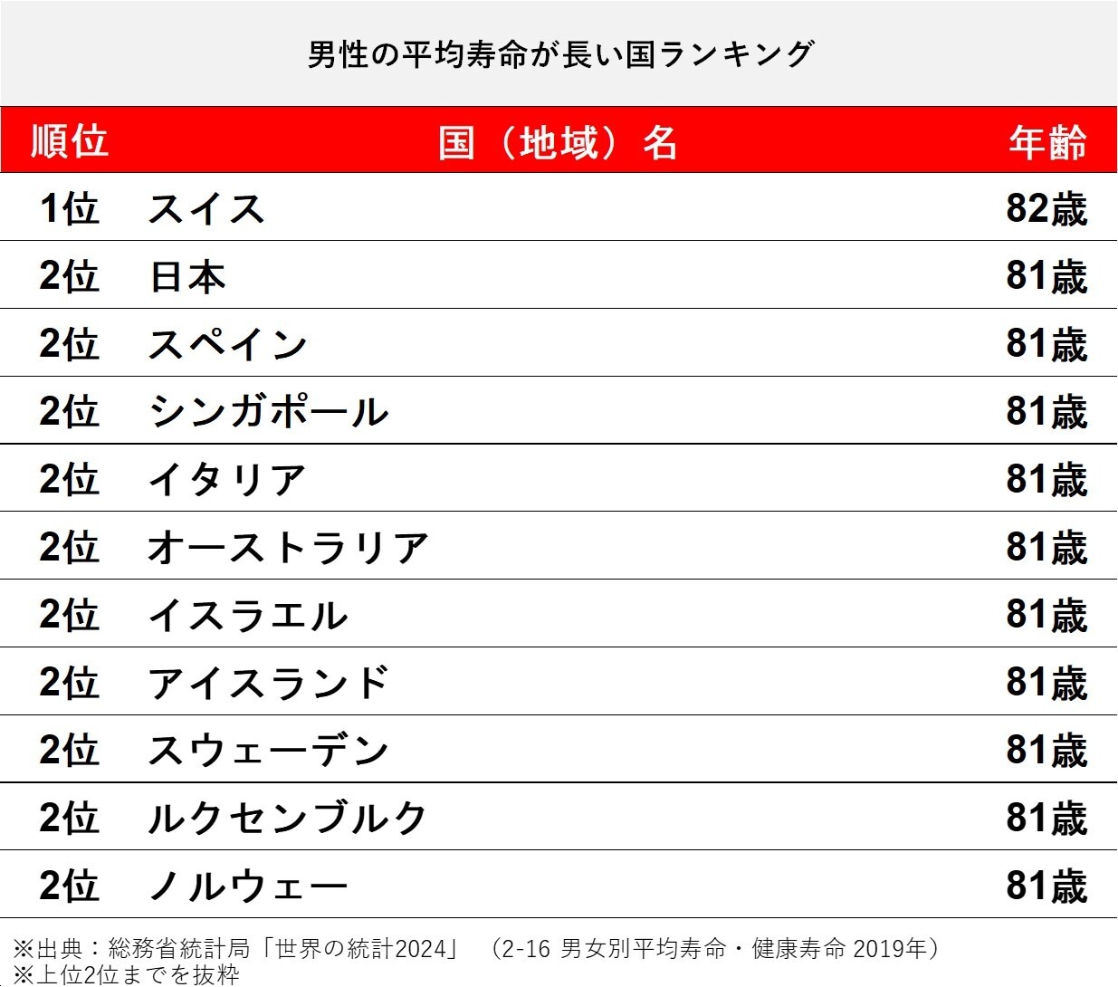 男性の平均寿命が長い国ランキング! 「日本」や「シンガポール」を抑えた1位は? 2 2- All About ニュース。