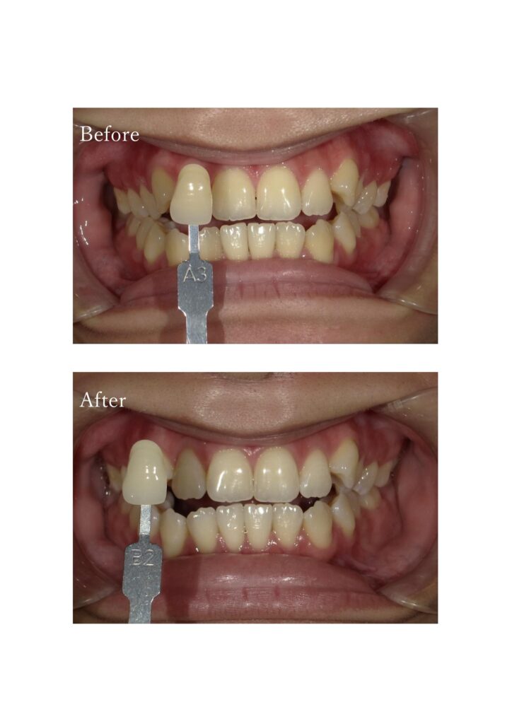 症例 レジンの詰め物がある方のオフィスホワイトニング恵比寿の歯医者 恵比寿デンタルクリニック東京。