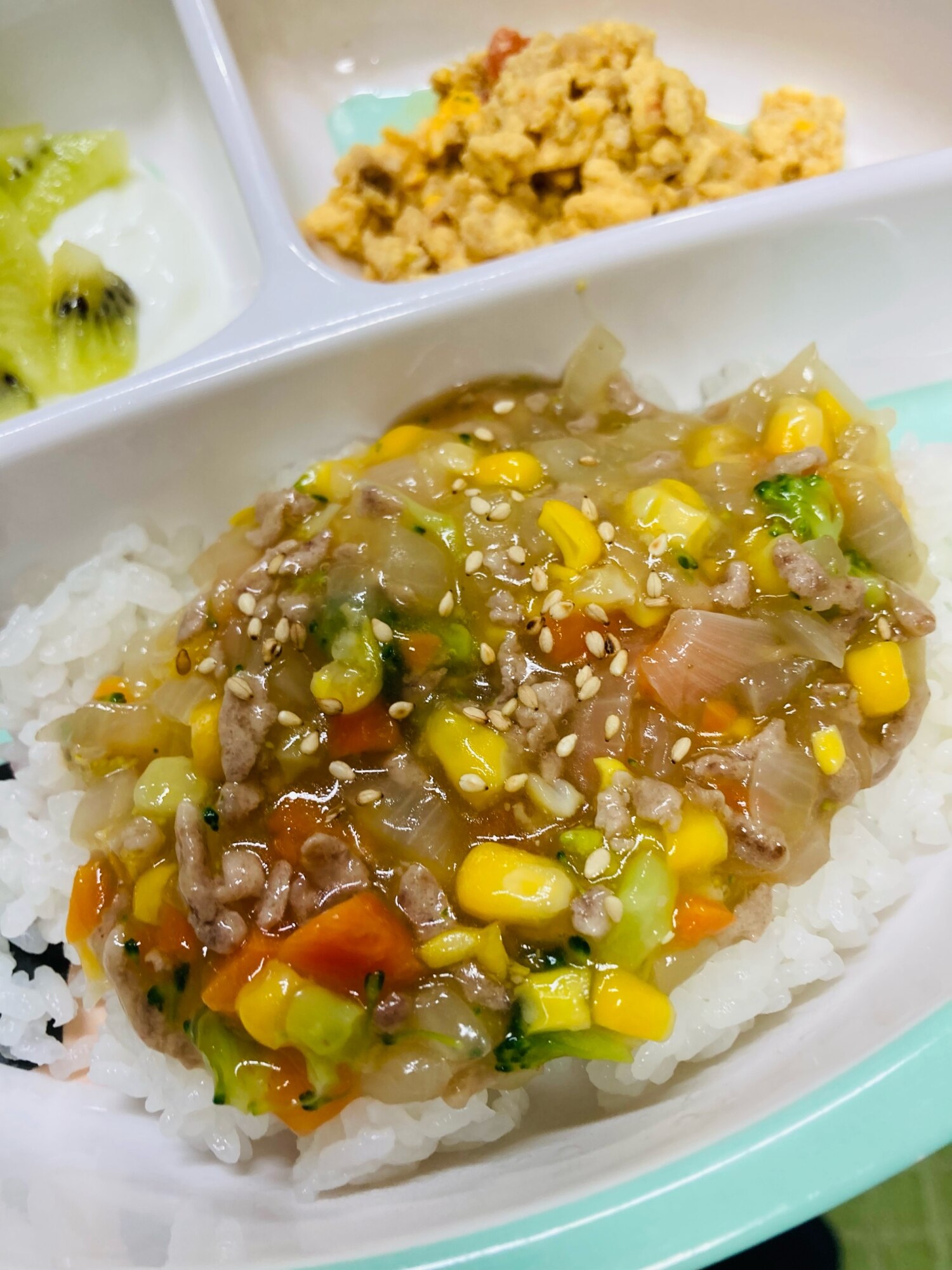 離乳食☆ミックスベジタブルと豚ひき肉のチャーハン。