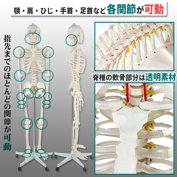楽天市場楽天1位 人体模型 骨格模型 骨 等身大 身長約166cm 展示スタンド付き 骨格標本 骨格モデル 全身骨格模型 実物大 直立 可動 医学理学 解剖学 整体 整骨院 関節 資料 リアル レプリカ ディスプレイ 骨格モデル セット ヒト骨格 解剖骨格 1年保証 □ 送料無料。