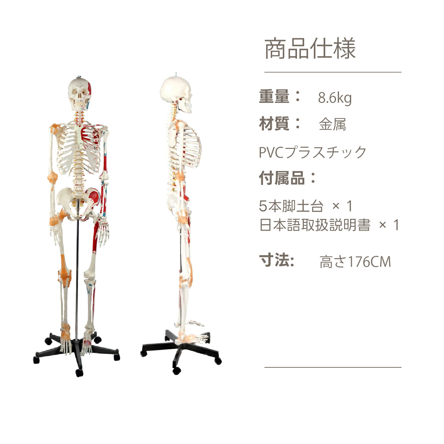 人体模型 骨格模型 骨 等身大 身長約166cm 展示スタンド付き 骨格標本 骨格モデル 全身骨格模型 実物大 直立 可動 医学 理学 解剖学 整体整骨院 関節 資料 リアル レプリカ ディスプレイ 骨格モデル セット ヒト骨格 解剖骨格 1年保証 送料無料の通販はau PAY マーケット。