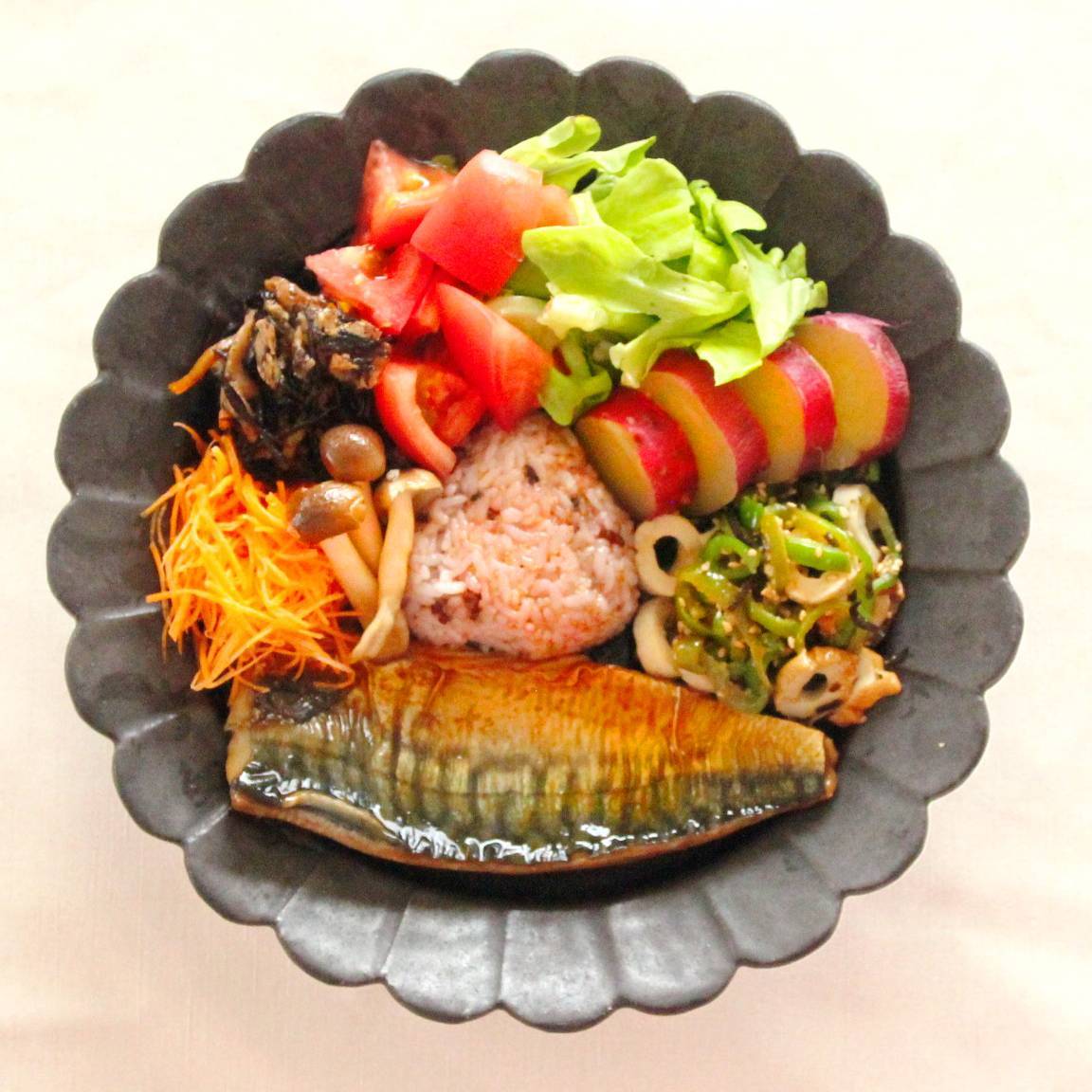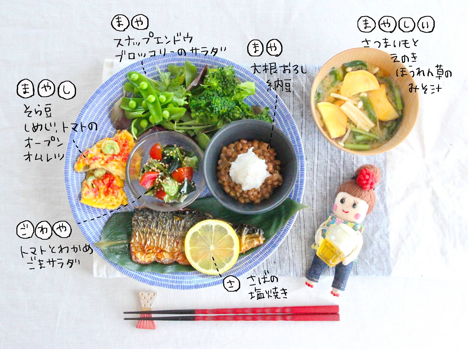 まごわやさしい献立♪さばの照り焼きのワンプレート。