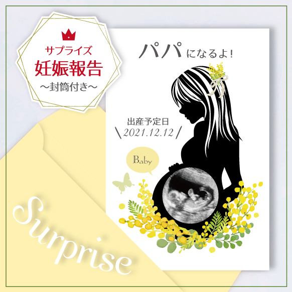 サプライズ 妊娠報告カード 封筒付き エコー写真印刷タイプcol.ミモザ:ロングヘア - M designminne byGMOペパボ国内最大級のハンドメイド・手作り通販サイト。