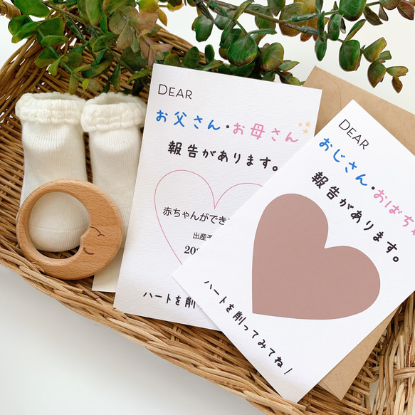 妊娠報告がより一層楽しめます♪ スクラッチカードになっているので スクラッチを削ってもらってサプライズ♪ハガキの裏面は真っ白なので、住所を記入して切手を貼れば遠方の両親へのお知らせする事もできます✩︎⡱ 早くお知らせしたい気持ちわかりますので できる限り。
