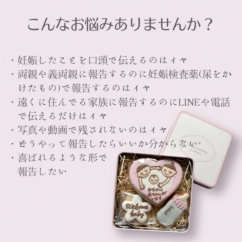 妊娠報告 サプライズクッキー缶 ママ&ベビー 6 27発送Iberis。