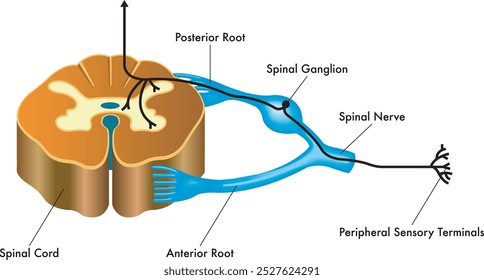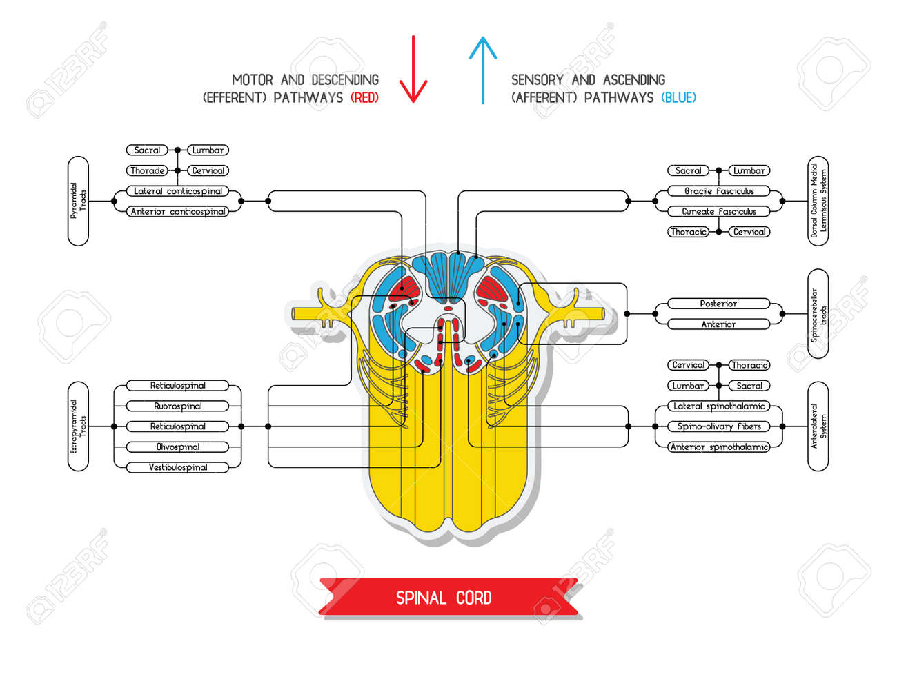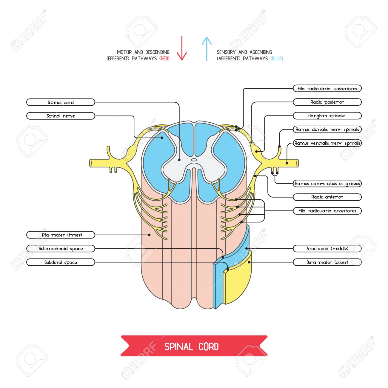 断面脊髄を通じて、主要な神経列および管を示します。Adobe Illustrator で作成されます。 EPS 10。のイラスト素材・ベクターImage 43832587。